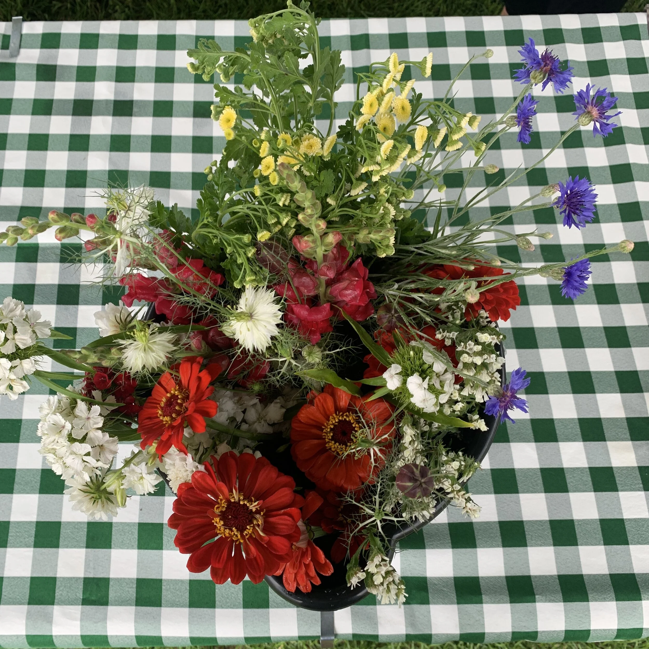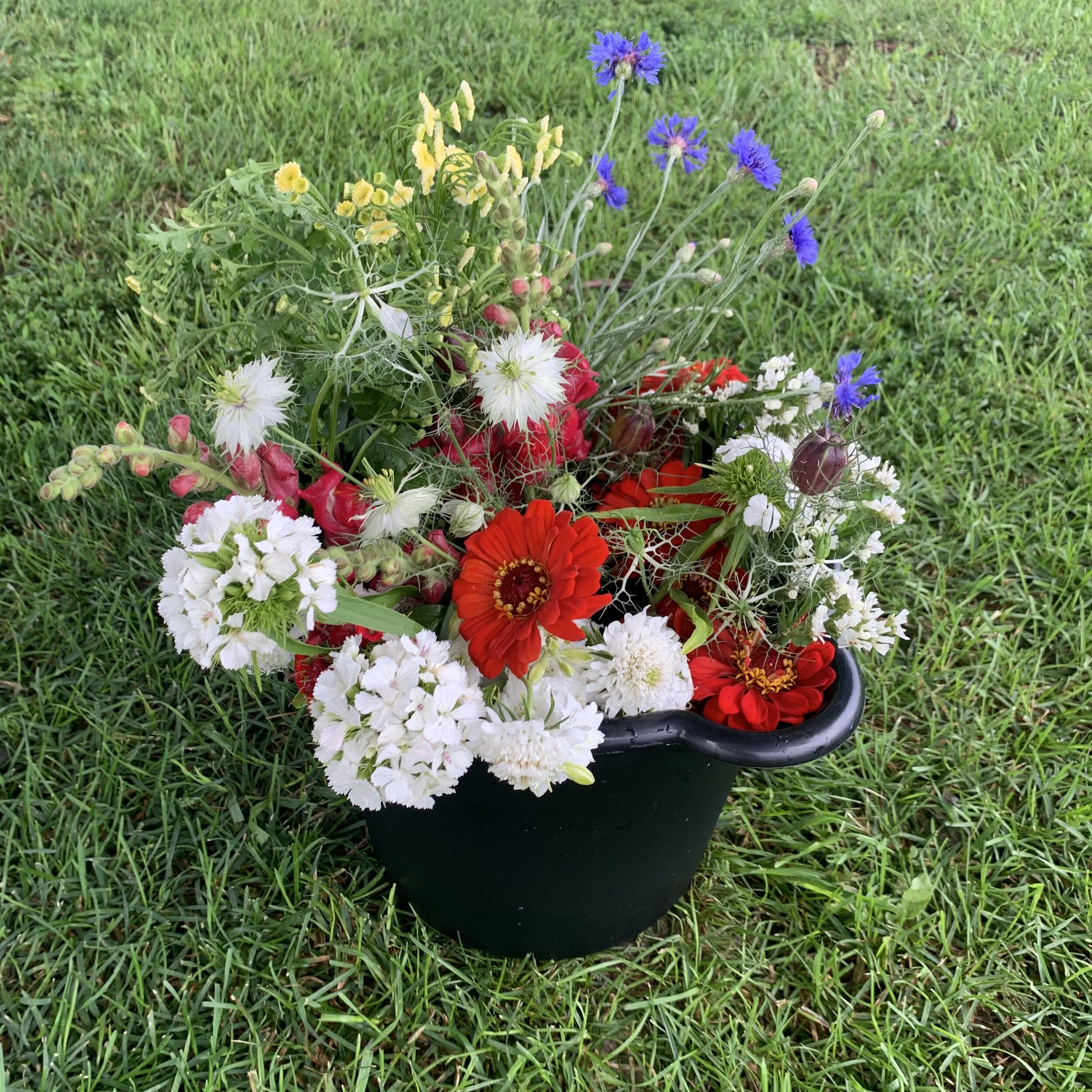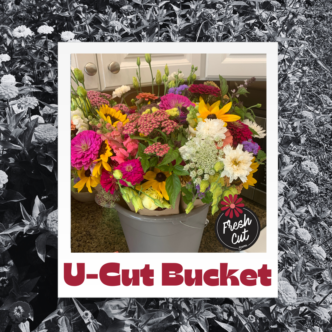 Pick up a bucket and cut your own stems from seasonal blooms. (sunflowers at an additional cost)